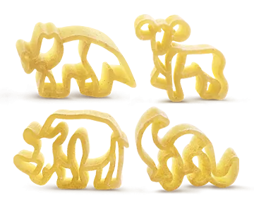 Макаронные изделия, по форме относящиеся к фигурной пасте представляют собой забавных динозавриков разной формы, которые помогут превратить обед в настоящее приключение.